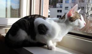 Manchmal begreif ich (Laxus) einfach nicht, warum unser Pflegemami mich nicht rauslässt! Ich maunze doch was ich kann!!! Sitze vor dem Fenster: «Miauuuuuuuuu!» Scharre vor der Tür! Streich ihr um die Beine und führe sie zum Fenster, damit sie endlich begreift: «Ich will raus!» – Nichts passiert