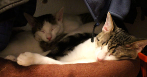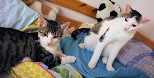Vor fünf Monaten kamen sie zu uns, Natsu und Laxus. An vielen Stellen Hautpilz, übersäht mit Jodflecken, so dass man meinte sie seien Vierfärber! Kleine freche, aber auch scheue Kätzchen. Viel Zeit und Liebe haben wir investiert in die Pflege und in die Sozialisierung!