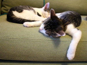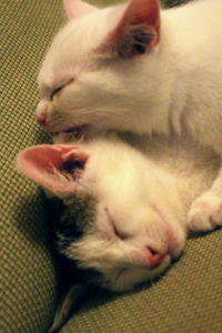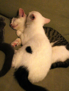 . Das gute Futter lässt unser Fell wunderschön glänzen, auch ändert sich bei Gray und Shalulu langsam das kuschelweiche Babyfell in ein richtig schönes seidenes Erwachsenen-Fell.