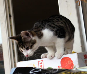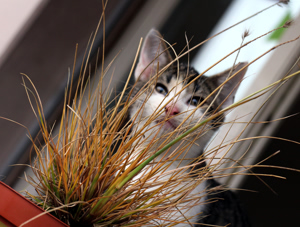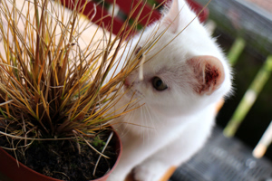 Auf dem Balkon ist es zur Zeit auch sehr spannend, denn immer wieder fallen Blätter runter, die wir dann durch das Netz in die Wohnung reinziehen, damit spielen und auch essen!