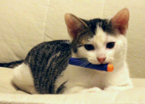 ! Da war mein Pflegemami auf dem Sofa und hat am Compi, eben am Pad, so viele hübsche Katzen angeschaut. Da bin ich auf ihren Schoss und hab mal versucht mit meiner Pfote dasselbe zu machen und es hat funktioniert – und es hat mir unheimlich viel Spass gemacht! Da gab es ganz viele Katzen zu bestaunen, eine schöner als die andere, mein Mami hat mir dann vom Verein erzählt, und dass ich da auch drauf bin. Ich hoffe für alle Büsis, dass sie auch so ein tolles Zuhause bekommen wie wir bald.