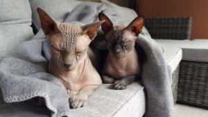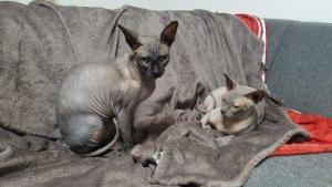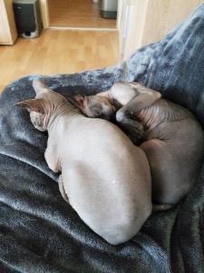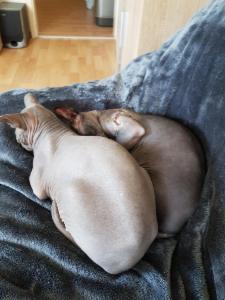 Am liebsten schlafen die beiden in der Decke eingekuschelt auf dem Sofa. Manchmal dient aber auch der Arm von ihren Besitzern als Kopfkissen. Franky ist ein super toller Jäger und beide mögen Kartons oder können sich mit zusammengeknüllter Zeitung stundenlang beschäftigen.
