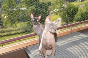 Sie toben beide gerne quer durch die Wohnung oder beobachten ihre Menschen von ihrem Lieblingsplatz aus. Franky und Django lieben es draussen auf dem Balkon in der Sonne zu liegen. Am liebesten mögen sie es bei 34 Grad in der puren Sonne