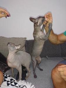 . Abends warten beide auf ihre Menschen und wollen bespielt werden.