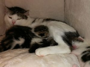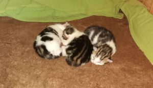 Noch immer lasse ich mich nicht anfassen und lege mich in eine Ecke des Zimmers, wenn man in mein Zimmer kommt. Völlig entspannt kann ich dann zuschauen, was im Zimmer so läuft. Meine Kleinen machen weiterhin gute Fortschritte, doch sind sie noch nicht die grossen Entdecker. Sie kuscheln lieber zusammen und schlafen, statt mit ihren 4 Beinchen das Laufen zu üben. Aber das kommt sicher noch.
