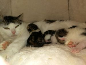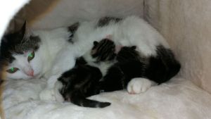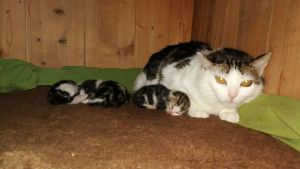 Diese Woche verlief ziemlich ruhig und es gibt nicht viel zu erzählen. Täglich kommen meine Pflegeeltern zu mir, schwatzen mit mir und schmusen mit meinen Kindern. Mehrmals pro Tag kriege ich neues Futter, denn ich haue so tüchtig rein. Bis zu 700 Gramm verputze ich, am liebsten Nassfutter. Trockenfutter mag ich nicht so sehr. Ihr könnt euch vorstellen, dass alle manchmal über meinen grossen Appetit staunen