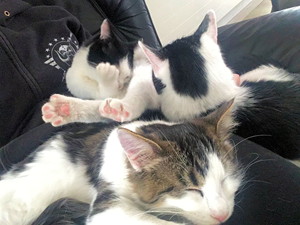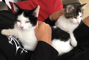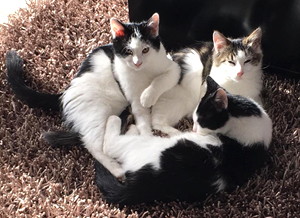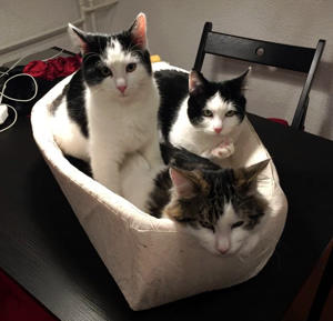 . Wir wurden gepiekst und haben erst wieder etwas mitbekommen als Mama unsere Kiste ins Auto packte und es endlich nach Hause ging. Kenoah hat sich sehr nach uns gesehnt, er war noch nie solange ganz alleine. Als wir zur Türe rein kamen, hat er seinen ganzen Kummer mit einem lauten Miau-Konzert von sich gegeben (eigentlich können wir alle nicht miauen). Uns tut noch etwas der Hintern weh, aber Mama hat gute Medis bekommen, welche die Schmerzen lindern