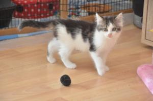 Der Frechste von allen ist Kaleo. Er zeichnet sich durch seinen süssen weissen Schwanzspitz aus und ist sowas von vorwitzig und neugierig. Nichts hält ihn und er kann stundenlang toben und spielen. Er ist lieb, verschmust anhänglich und einfach ein süsser Fratz.