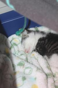 Sorgenkind Nummer eins war zu diesem Zeitpunkt der kleine Sinus! Ihn hat es ziemlich erwischt und er hatte grosse Mühe mit der Atmung. Es ging ihm so schlecht, dass er sogar Sauerstoff brauchte und wir einfach nur hoffen konnten, dass das Antibiotika schnell anschlägt. Zusätzlich sollten Inhalationen das Atmen erleichtern. Nur langsam erholte sich Sinus, um nach ein paar Tagen dann wieder zu kippen und er erneut einen Schub durchmachte.
