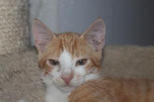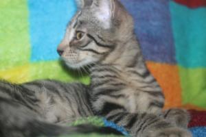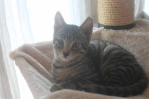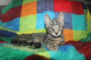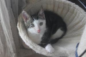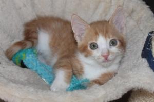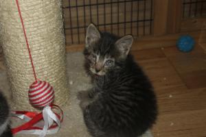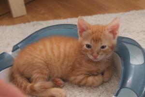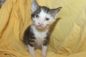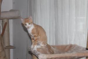 Norek… unser grosses Sorgenkind mit seinem Auge! Mit viel viel intensiver Betreeung, auch durch den Tierarzt, und diversen Medikamenten… schaute mich vor ein paar Tagen plötlich eines Morgens ein kleiner Schelm mit zwei kugelrunden Augen an! Das kranke Auge hat noch eine Trübung der Hornhaut, die aber immer besser werden sollte. Auch sein Sehvermögen ist auf diesem Auge natürlich noch etwas eingeschränkt, aber auch das sollte sich noch verbessern. Seit jenem Morgen ist Norek ein ganz anderes Büsi! Er ist völlig übermütig und vermöbelt seine Geschwister und auch die anderen Kitten! Er liebt es durchgeknuddelt zu werden und geniesst jeden Kontakt zum Menschen!