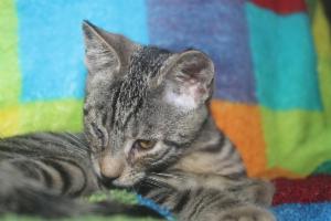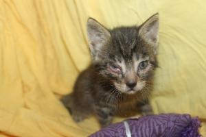 Auch Norek gehört zu einem der Sorgenkinder. Seine Augen wurden immer schlechter und sprachen einfach nicht auf Therapien an. Ein Abstrich zeigte dann auch, was wir befürchtet hatten. Katzenschnupfen! Hört sich harmlos an, kann aber die Kleinen bis an die Grenzen bringen! Die Medikamente wurden angepasst und doch setzte die erhoffte Besserung einfach nicht ein! Das Auge wurde immer schlimmer, auch war es für Norek schmerzhaft wenn man da etwas machen musste!