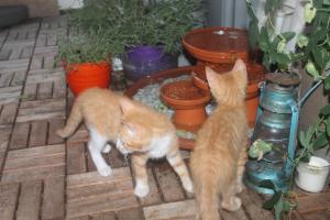 Auf Balkonien sind wir immer noch möglichst oft anzutreffen, da wir es einfach lieben dort draussen die frische Luft zu geniessen, Fliegen und Käfer zu jagen, in den Blumentrögen zu buddeln und einfach die Sonne geniessen! Aber am Abend sind wir leider dann schneller wieder in der Wohnung, da unser Pflegemami sonst Eiszapfenfüsse bekommt… und das wollen wir ja dann auch nicht