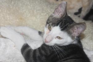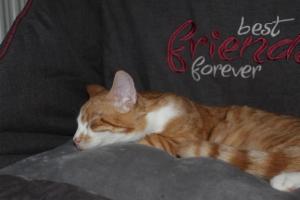 Sinus… dir ging es die ersten Tage so schlecht, das ich jeden Moment damit rechnen musste, dass du es nicht schaffst! Der Katzenschnupfen hat dich so geschwächt, dass der Lebenswille fast ganz verschwunden war in deinen Augen! Doch mit viel, viel Pflege und deinen Geschwistern haben wir dich wieder hingekriegt! Auch wenn das alles leider Spuren hinterlassen hat bei dir und du immer wieder Medikamente brauchen wirst, so bist du so ein toller kleiner Kerl geworden! Nur immer „Chabis“ im Kopf und ständig irgendwelchen Schabernack, den du ausgeheckt hast! Mein kleiner Schmuser… bitte pass gut auf dich auf!