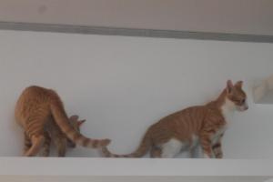 Am allerliebsten sind wir aber auf dem Balkon unterwegs. Dort könnten wir uns den ganzen Tag aufhalten und finden es jeweils sehr blöd, wenn unser Pflegemami uns dann heimtückisch überlistet mit Leckerlis und uns rein holt, wenn sie aus dem Haus geht oder es dunkel wird!