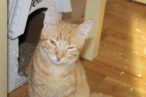 Wir kuscheln auch sehr gerne mit den anderen Katzen hier und natürlich auch mit unserem Pflegemami. Das Auge von Norek ist manchmal stark am Tränen, aber sieht sonst wirklich top aus für das was er durchgemacht hat.