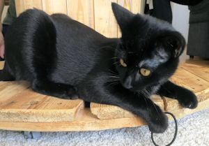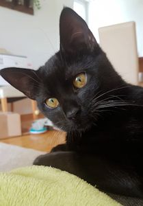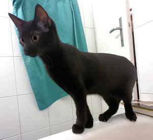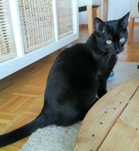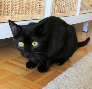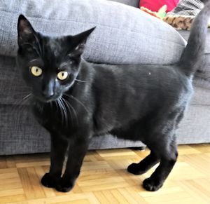 Babou ist ein wunderschöner, feiner Kater mit grossen, orangen Augen. Sein schwarzes Fell glänzt eher dunkelbraun in der Sonne und man kann sogar eine feine Tigerung erkennen! Der äusserst aufmerksame Kater schaut ständig, was seine Besitzer machen und verfolgt sie auf Schritt und Tritt. Wenn jemand es wagt, die WC-Türe zu schliessen, miaut lauthals