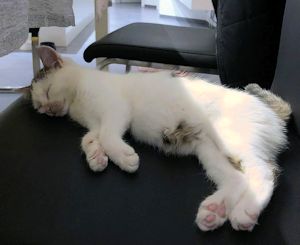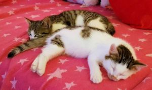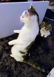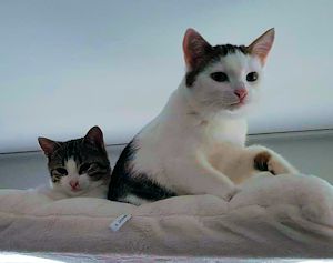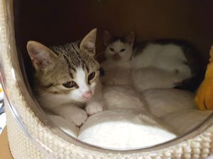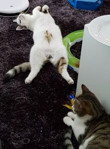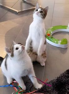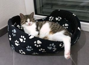 Die Besitzer erzählen auch, dass sie von unserem Verein eigentlich zwei Katzen übernommen haben; Babou und seine beste Freundin und Beschützerin Ria. Leider wurde bei Ria FIP diagnostiziert und schweren Herzens entschieden sich die Besitzer, sie vor dem Leiden zu bewahren. Die Besitzer haben diese schwierige Situation bewundernswert gemeistert und wir möchten uns bei ihnen für die Fürsorge bedanken, die sie Ria und auch Babou entgegenbrachten.