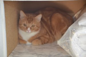 ! Da sie uns aus Platzgründen nicht trennen kann und wir nur ins Klo gehen, wenn keiner anwesend ist, hat man bisher nicht heraus gefunden, wer von uns der Übeltäter ist. Natürlich hätte sie ein ganz kleines WC, wo sie einen von uns hätte einsperren können, aber das wollte sie auch nicht, denn auf kleinstem Raum eingesperrte Katzen tun ihr sowas von leid.