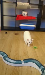 Doch hat meine Pflegemama noch etwas herausgefunden mit dem ich mich super besänftigen lassen kann, nämlich Lachs. Das ist auch ein gutes Bestechungsmittel damit sie meine Babys schnell wiegen kann.