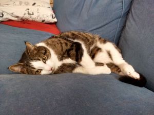 Andere Katzen sind nicht so seins und er geht ihnen lieber aus dem Weg. Mit Kindern kann er es auch nicht so gut und wählt auch dort lieber die Möglichkeit des Ausweichens