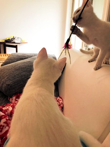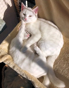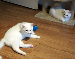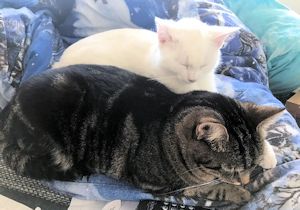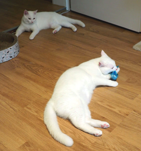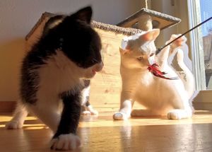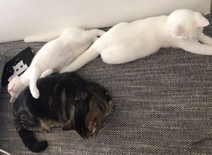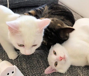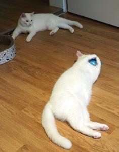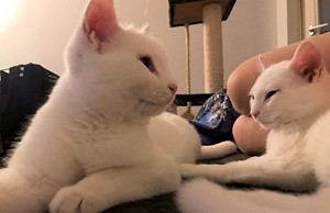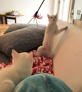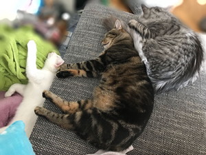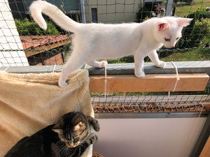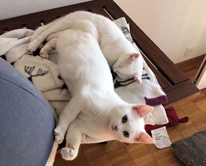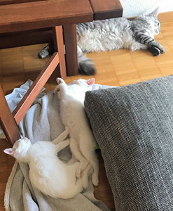 . Meine Katzen haben die zwei sehr schnell akzeptiert. Sogar Snowfox, auch wenn der gute 3 Tage von meiner alten Dame angefaucht wurde, es war ihm ja egal, er wusste ja nicht, was sie machte, da er nichts hörte.