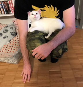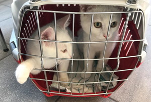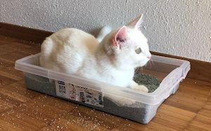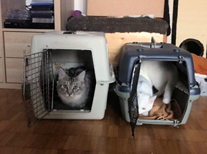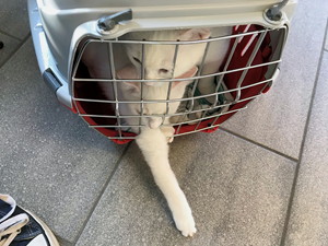 ! Da haute er uns kurz ab. Ansonsten war er ein Vorzeige-Kater. Wieder zuhause musste er erst mal Pipi machen. Ich bin stolz auf ihn, dass er so lange durchgehalten hat, ohne in die Box zu machen