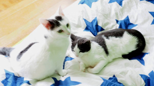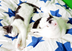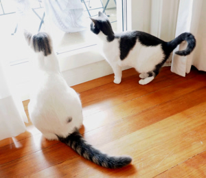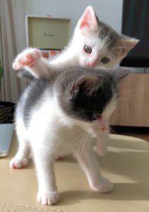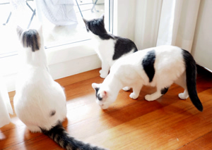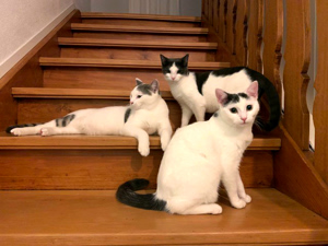 . Er spielt und kuschelt mit den beiden, einmal mit Ivory, dann wieder mit Gini. Beim Fressen lässt er ihnen gentleman-like den Vortritt. Er ist überhaupt einfach ein toller Kumpel und liebt Gesellschaft über alles. Bei seinen Streifzügen in der näheren Umgebung besucht er oft die Kinder auf dem Pausenplatz gegenüber, Nachbarn, oder seinen neuen Katzenkumpel ein paar Häuser weiter
