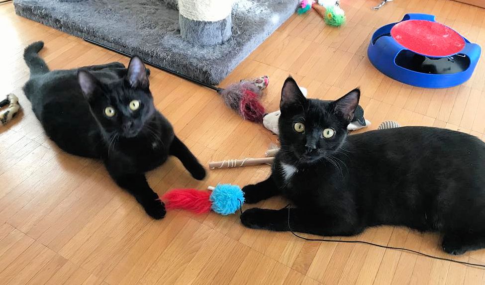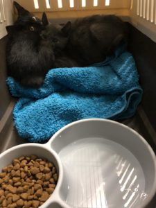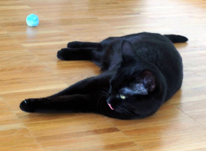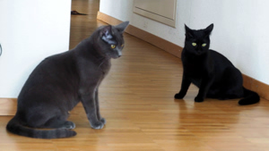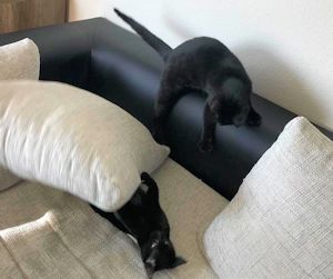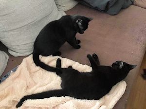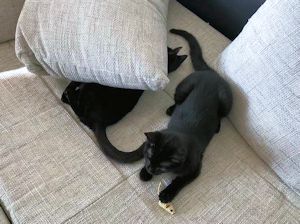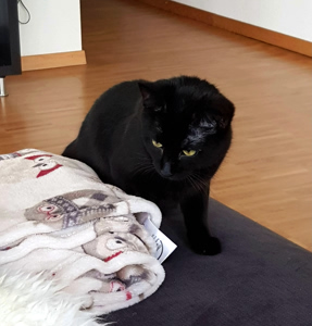 . Vor ihrem grossen Bruder Filou haben die beiden aber noch etwas Respekt und legen sich vor ihm auf den Rücken, wenn er an ihnen vorbeiläuft. Filou, der sich sehr zutraulich von uns streicheln liess, faucht seine neuen Gspänli ab und zu noch an, vor allem wenn sie sich das Sofa mit ihm teilen wollen. Das geschieht oft abends, wenn die Familie zusammen einen Film schaut. Da lässt sich Nero aber auch gerne etwas streicheln.