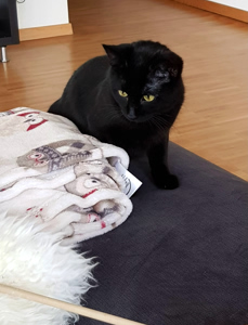 Nala ist ein wunderhübsches, komplett schwarzes Katzenmädchen mit einem süssen Gesichtchen und leuchtenden grün-gelben Augen. Sie ist um einiges kleiner und feiner als ihr Bruder Smaug, weiss aber ganz genau was sie will und was nicht. Sie ist eine kleine Diva und benimmt sich oft auch so