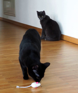 Sie spielt auch gerne allein und mag die Spielsachen, die vom Kratzbaum hängen. Nala und Smaug jagen sich oft die ganze, grosse, Wohnung von einem Ende zum anderen. Mal jagt sie ihn, dann wieder er sie. Oder man lauert sich gegenseitig auf und springt dann unvermittelt aus einem Versteck. Nala liebt Wasser und muss immer überall ihre Pfötchen reinhalten. Einmal ist sie sogar versehentlich in’s WC gerutscht, was ihr aber überhaupt nicht gefallen hat.