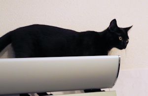 Balu und Mogli sind zwei äusserst neugierige, aktive und sehr hübsche junge Kater. Kaum war ich eingetreten wurde ich von Mogli intensiv beschnuppert. Gemäss seinen Besitzern ist es eine liebenswerte Marotte von ihm, alles und jeden gründlich abzuschnuppern
