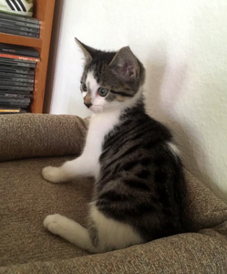 . Doch was nicht ist kann noch werden. Der süsse schwarz-weisse Kater mit schönem gepflegtem Fell ist ein kleiner Wirbelwind, dem immer etwas in den Sinn kommt. Nachts schläft er bei seinen Menschen im Bett und spielt morgens den Wecker. Er ist ein kleiner Sturkopf, wenn ihm etwas nicht passt kann es sein, dass seine neue Mama seine Krallen zu spüren bekommt