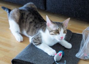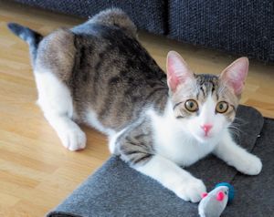 . Loona liebt es mit Stoffmäusen zu spielen und apportiert diese auch gerne. Sie haben drei riesige Kratzbäume, die sie gerne zum Klettern oder Relaxen nutzen.