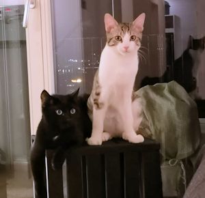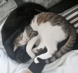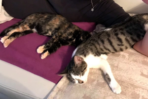 . Wenn es ihnen mal zu wild wird haben sie ein eigenes Katzenzimmer als Rückzugsort. Beide schmüsele sehr gerne und schlafen manchmal im Bett ihrer Menschen. Sie dürfen alles und sämtliche Türen stehen ihnen offen. Xena ist manchmal sehr verfressen. Sie sass auch schon im Kühlschrank, um Futter zu ergattern