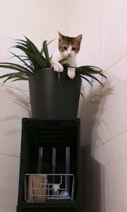 , ist äusserst verspielt und klettert auf alles, was irgendwie in die Höhe ragt, sei es der Sonnenschirm, ein Kleiderständer, oder sogar eine Türe auf deren Kante er geschickt balanciert