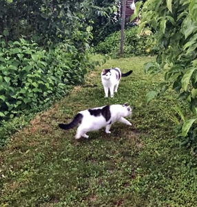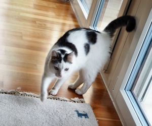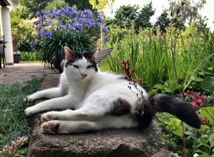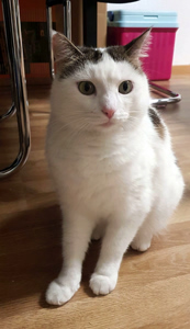 Sie war über einen Wasserspeicher auf ein Vordach und von da über’s ganze Dach auf die andere Seite geklettert. Ihre Unternehmungslust hat ihr vor kurzem auch mal ein paar Bisswunden eingebracht, wohl von einem Streit mit einer anderen Katze. Ayla ist auch eine gute Jägerin und bringt, wie ihr Bruder (leider) gerne Geschenke mit nach Hause.
