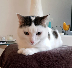 . Ich wurde zwar leicht aufgeregt, weil Jamiro gerade entwischt war, aber äusserst herzlich empfangen. Die Begeisterung der Besitzer über ihre beiden vierbeinigen Familenmitglieder war weder zu übersehen noch zu überhören. Sie erzählten mir viele Geschichten und zeigten mir noch mehr tolle Fotos. Ayla und Jamiro sind zwei ganz tolle Katzen, die sich ziemlich gleichen. Jamiro kann man jedoch von vorne gut an seinem kleinen Fleck an der Nase erkennen.