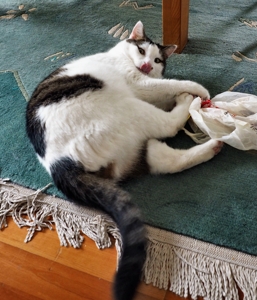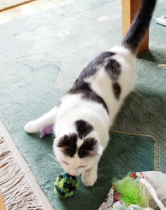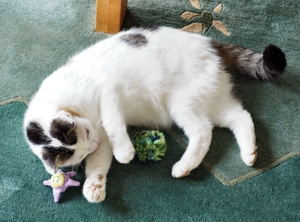 Drinnen begrüsste mich gleich Ayla. Die erste Zurückhaltung war schnell verflogen und wie immer faszinierte der Sack mit den Spielsachen. Ayla ist eine wunderschöne Katzendame mit viel Ausstrahlung und eigenem Kopf. Sie ist furchtlos, sehr unternehmungslustig und entdeckungsfreudig