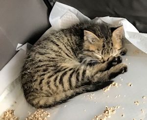 Da Nala das Pflegezimmer besetzt und Leo und Edi das Wohnzimmer, musste Mia erst einmal ins Badezimmer ziehen, damit ich schauen konnte, was oben rein geht und unten wieder rauskommt. Schon nach ein paar wenigen Stunden stand fest, dass sie voller Würmer war. Bestimmt vergingen keine 5 Minuten bis die erste Entwurmungstablette in ihr drin war. Das passte ihr zwar nicht
