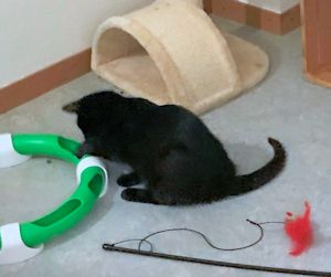 . Inzwischen darf er auch ab und zu raus zu den anderen, auch wenn er weitaus der Kleinste von allen ist. Doch da kann er endlich seine Energie loswerden. Dennoch ist er allein in seinem Alter, aber wir hoffen, nicht mehr lange.