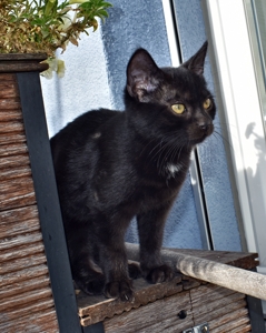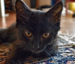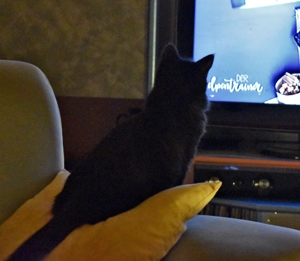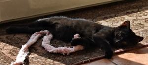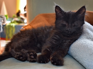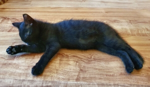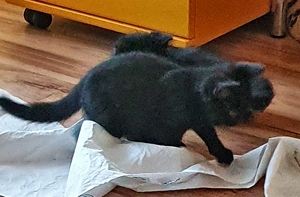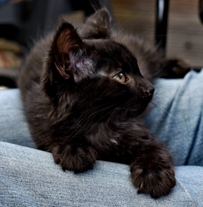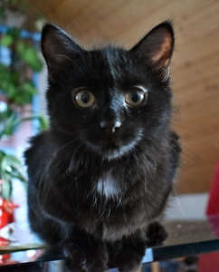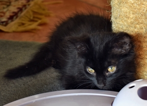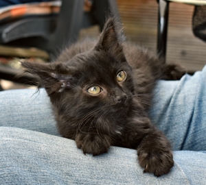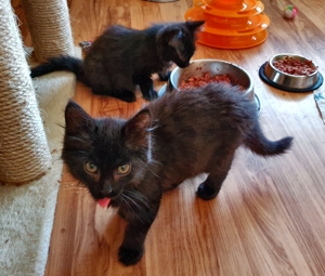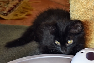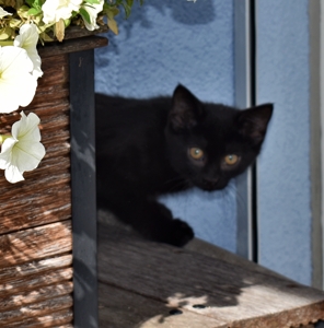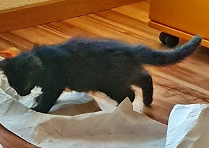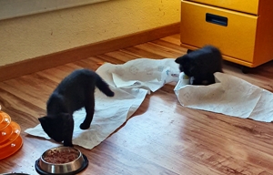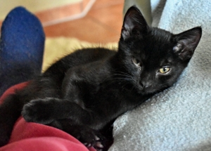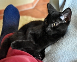 Mein Schwesterchen Luana wird immer anhänglicher und drückt sich oft an die Beine der Pflegeeltern oder legt sich zu ihnen. Manchmal, wenn sie Zeit und Lust hat, klettert sie auch auf sie und lässt sich streicheln und knuddeln. Ich bin noch nicht so weit, aber streicheln und sogar schon etwas knuddeln lasse ich mich auch