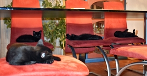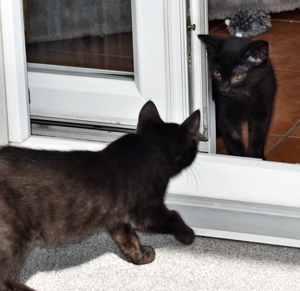 Am Sonntagnachmittag kam die neue Büchsenöffnerin von Scarlett um sie nach Hause zu holen. Als es dann soweit war wollte Luana auch zu Scarlett in die Transporttasche einsteigen. Ich habe mich aus Sicherheitsgründen zurückgezogen (nicht dass ich auch noch eingepackt werde!