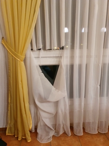 . Der Vorhang im Esszimmer hat, sehr zur Freude unserer Pflegeeltern, etwas Schaden genommen