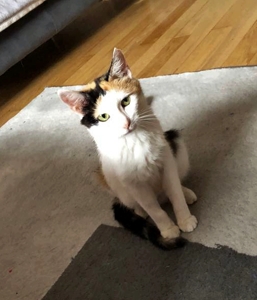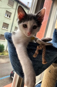 Ipa (Elfie) hat ein bisschen mehr Zeit zum Entdecken benötigt, da sie am Anfang super schüchtern war. Sie beobachtet uns gerne, besonders wenn wir an unserer Kücheninsel kochen, und noch mehr, wenn es dort Thunfisch gibt. Sie liebt auch ihren Katzenturm, von wo aus sie alles kontrollieren kann, was passiert und sie ist fast immer diejenige, die mit Merli ein Rennen beginnt (manchmal um 5 Uhr morgens). Sie bewundert Benjamin sehr und liebt es, auf seinem Schoss zu schlafen