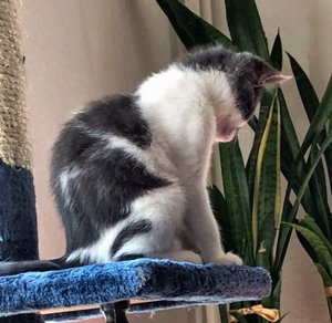 . Er hat eine super lustige Art zu schlafen und die Fähigkeit, uns zum Lachen zu bringen, selbst wenn er unsere Pflanzen „killt“ oder Dinge auf den Boden wirft. Er ist ein ausgesprochener „Foodie“ und liebt es, neue Arten von Katzenfutter zu probieren.