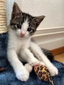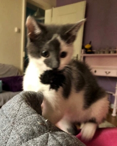 Merli (Grisu) hat eine extrem verspielte Persönlichkeit, er fordert ständig unsere Aufmerksamkeit. Er ist aber auch super ungeschickt und macht uns fast vom ersten Tag an einen Riesenspass. Er ist jetzt ein sehr grosser, halblanghaariger junger Kater, aber wir beide denken, dass er im inneren immer noch denkt, er sei ein kleines, winziges Kätzchen