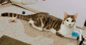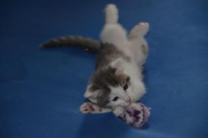 Tito ist noch der vorsichtigste von uns gefolgt von Spike. Die beiden mögen es noch nicht so sehr geschmust zu werden, sondern jagen lieber ihre Spielsachen. Caio ist mit Abstand der Verschmusteste der vier und Gizmo (Kiro) ist ihm auf den Fersen. Die beiden werden sicher richtige Schmusekatzen.