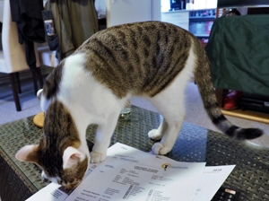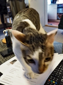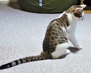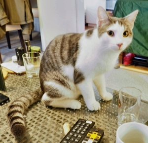 Um 24.00 Uhr war es dann schon wieder Zeit, die Leutchen zu wecken, und die Wohnung weiter zu erkunden. Diesmal ein bisschen weniger aufgeregt, als in der Nacht zuvor. Aber ich bin schon noch sehr unruhig und unsicher. Jedenfalls ist in den folgenden 5 Stunden immer mal wieder einer der beiden aufgestanden, hat mich gestreichelt und mir Leckerli zugesteckt. Ich konnte die Streicheleinheiten kurzfristig geniessen, habe dann aber zwischendurch meine unruhige Wanderung wieder aufgenommen. Wenn dann aber keiner bei Fuss stand für Streicheleinheiten, bin ich auch mal an’s Bett gestanden und habe mir diese geholt. Schlimm fand ich das geöffnete Fenster, weil ich wegen des Rollladens nicht raus konnte. Da habe ich dann schon mal gerüttelt und laut miaut. Um 5.30 habe ich mich wieder zurückgezogen, denn die Mitbewohner konnten nicht mehr schlafen und sind aus ihren Betten gestiegen. Nun ja, irgendwann muss ich ja auch schlafen