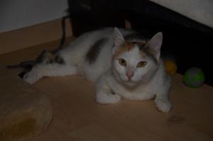 , habe ich meine Kinder das letzte Mal gesehen und wurde einfach von 2 fremden Leuten weggebracht. Nach einer kurzen Fahrt wurde meine Kiste direkt neben einer Katzentoilette geöffnet. Ich habe sofort geschnallt, dass ich hier meine „Sache“ verrichten muss. Dann habe ich mich aber gleich hinter der Waschmaschine und später zwischen Koffern und Taschen verkrümelt. Erst in der Nacht um 24.00 Uhr habe ich mich mal in der Wohnung umgeschaut, mit Miauen habe ich die 2 Menschen auf mich aufmerksam gemacht. Ich liess mich netterweise immer wieder kurz streicheln, bin aber sonst aufgeregt durch die Wohnung gedüst. Gefressen habe ich schon vorher, aber nur klammheimlich.