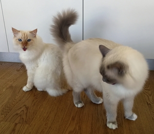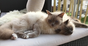 . Die beiden liegen auch gerne auf dem Katzenbaum und „betätzeln“ sich spielerisch.